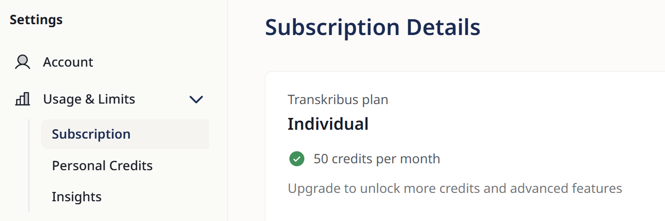 Upgrading or downgrading your subscription cannot be done directly in the Transkribus interface but happens via our website. Please consult our Subscription Management Terms for more details.