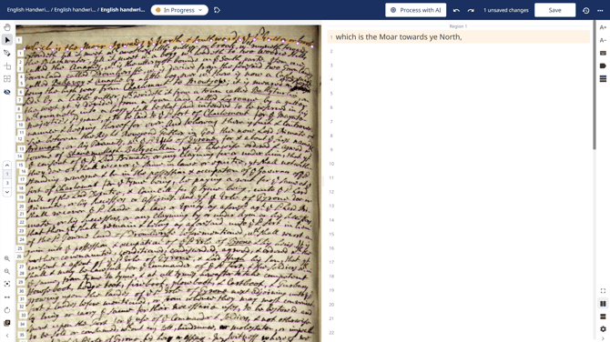 There are various reasons why you might want to transcribe documents manually. One of them is the creation of accurate transcriptions to train a Text Model to transcribe new pages automatically.